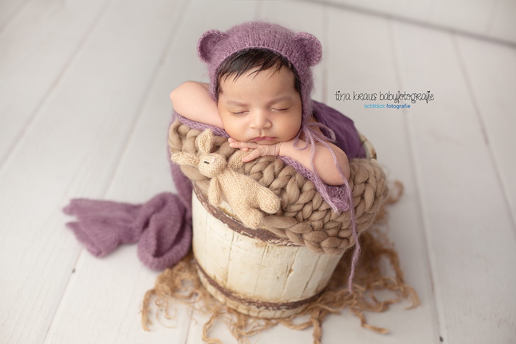 Ich fotografiere Euer Baby mit Windel und hautfarbener Windelhose darüber, damit die Windel bei den Posen abgedeckt ist. Babys fühlen sich mit Windel einfach wohler.